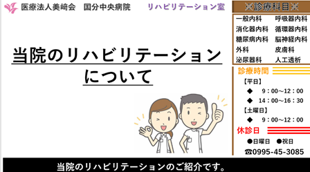 2022.3.25 リニューアル! 外来待合室に設置されているTVがリニューアルされました。 77インチ・4K・有機ELの大画面TVを用いて、リニューアルした当院紹介映像を紹介していきたいと思います。 お知らせ news すべて 最新情報 お知らせ まち医者ゴーサイの健康道
