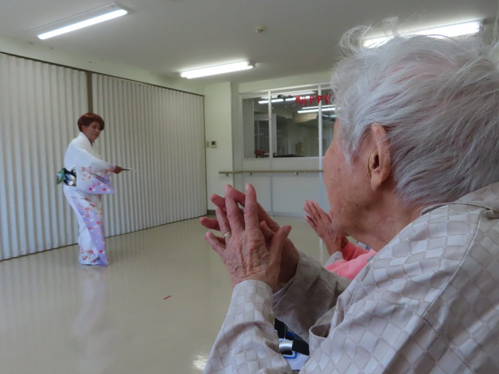 社会福祉協議会のボランティアの方々が来て下さり、舞を披露していただきました。